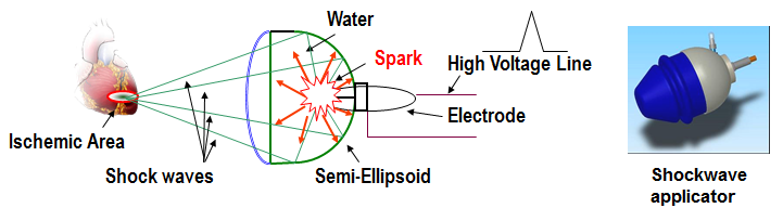 Prior to the commencement of the procedure, the exact location of the ischemic zone (treatment zone) is identified using the ultrasound imaging system. shockwaves that are mild in nature are targeted to the treatment zone through the anatomical acoustic window. These acoustic waves create shear stress on the vessel wall and stimulate the growth of new blood vessels and expand their network around the blocked arteries, which in turn enhances the quantum of blood supply to the heart and reduces the occurrences of angina.
