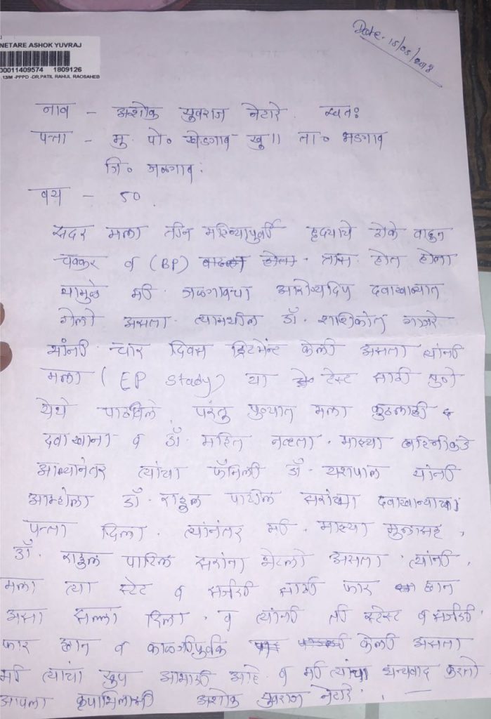 Thanks Dr. Rahul Patil Sir My mother and father underwent anigiyoplasty by Dr Rahul sir and today my parents are very good and fit n fine thank you sir. my family is very happy today with the you and your treatment. You have saved my parents life You the best cardiologist. ??