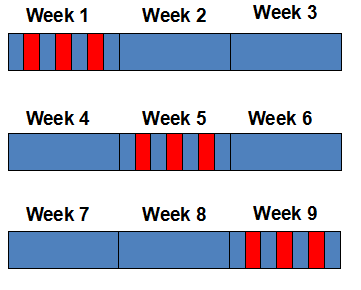 The whole treatment duration is 20-30 minutes and the patient should undergo a series of nine treatment sessions during a nine-week period. 3 treatment at first week of each month – 1st week, 5th week, 9th week.